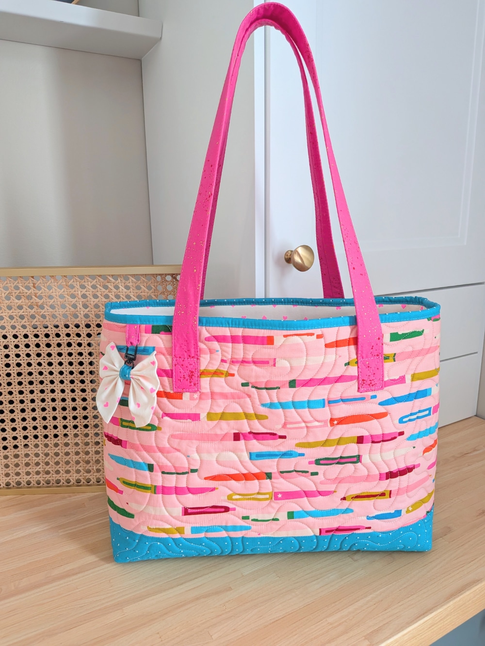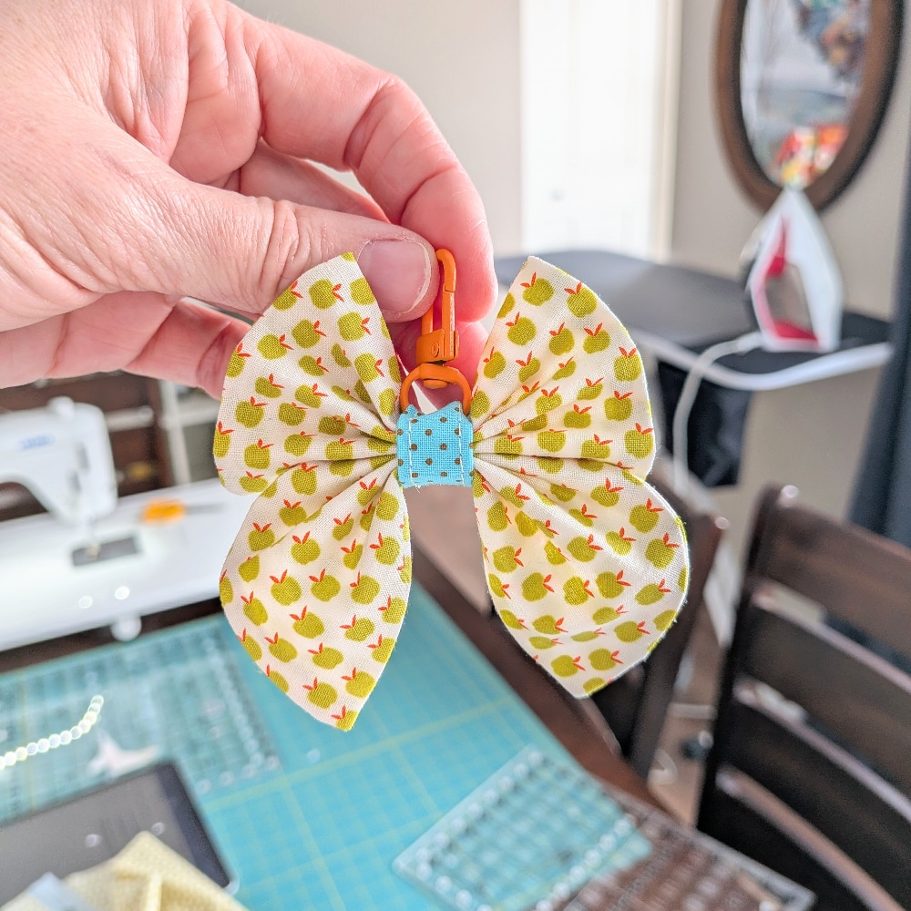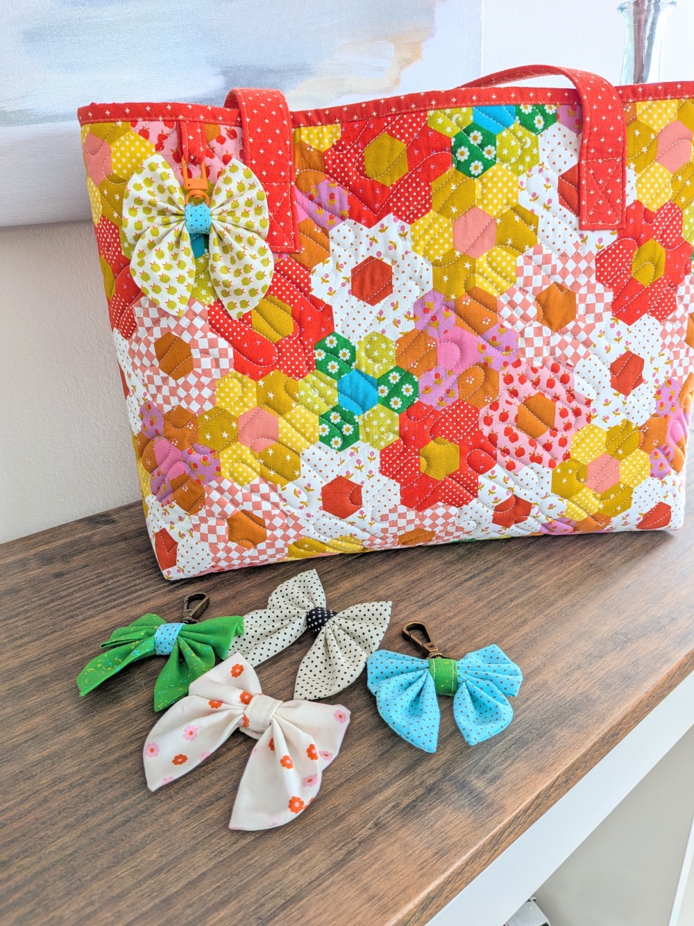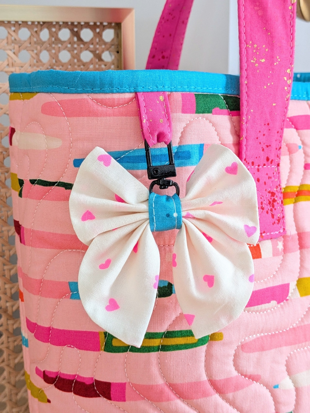 I was so delighted with these tiny bows that I specifically modified the Divided Tablet Tote pattern (releasing May 2026) to add a hanging tab.