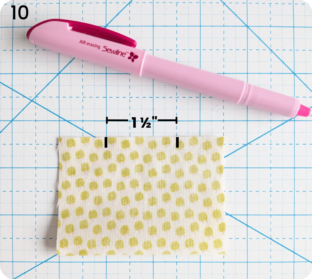 Sew ¼" away from the raw edges of the rectangle, leaving a 1 ½" gap between the marks.