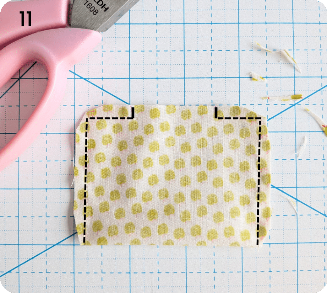 Trim the fabric near the corners using scissors, being careful not to cut into the seam allowance.