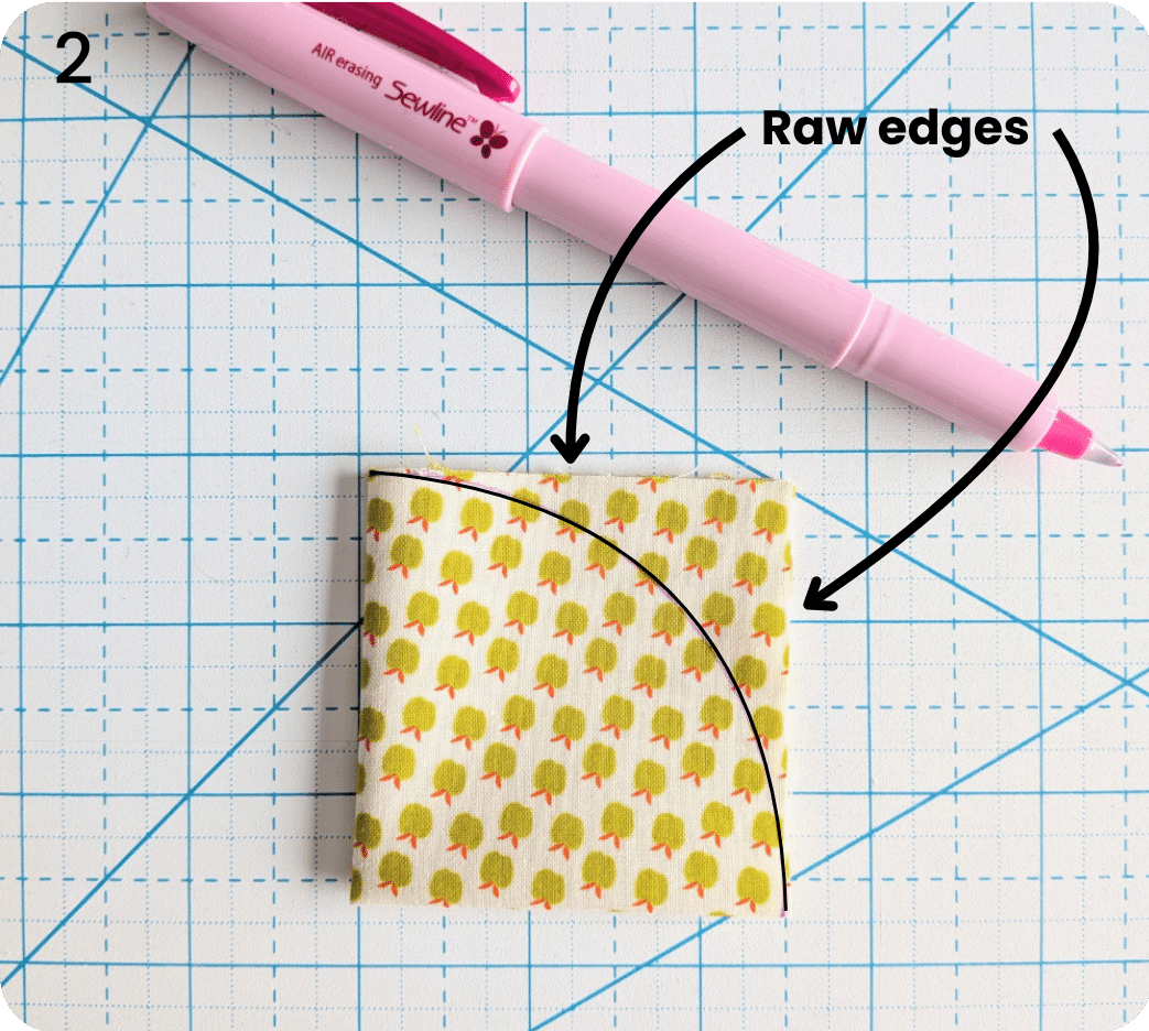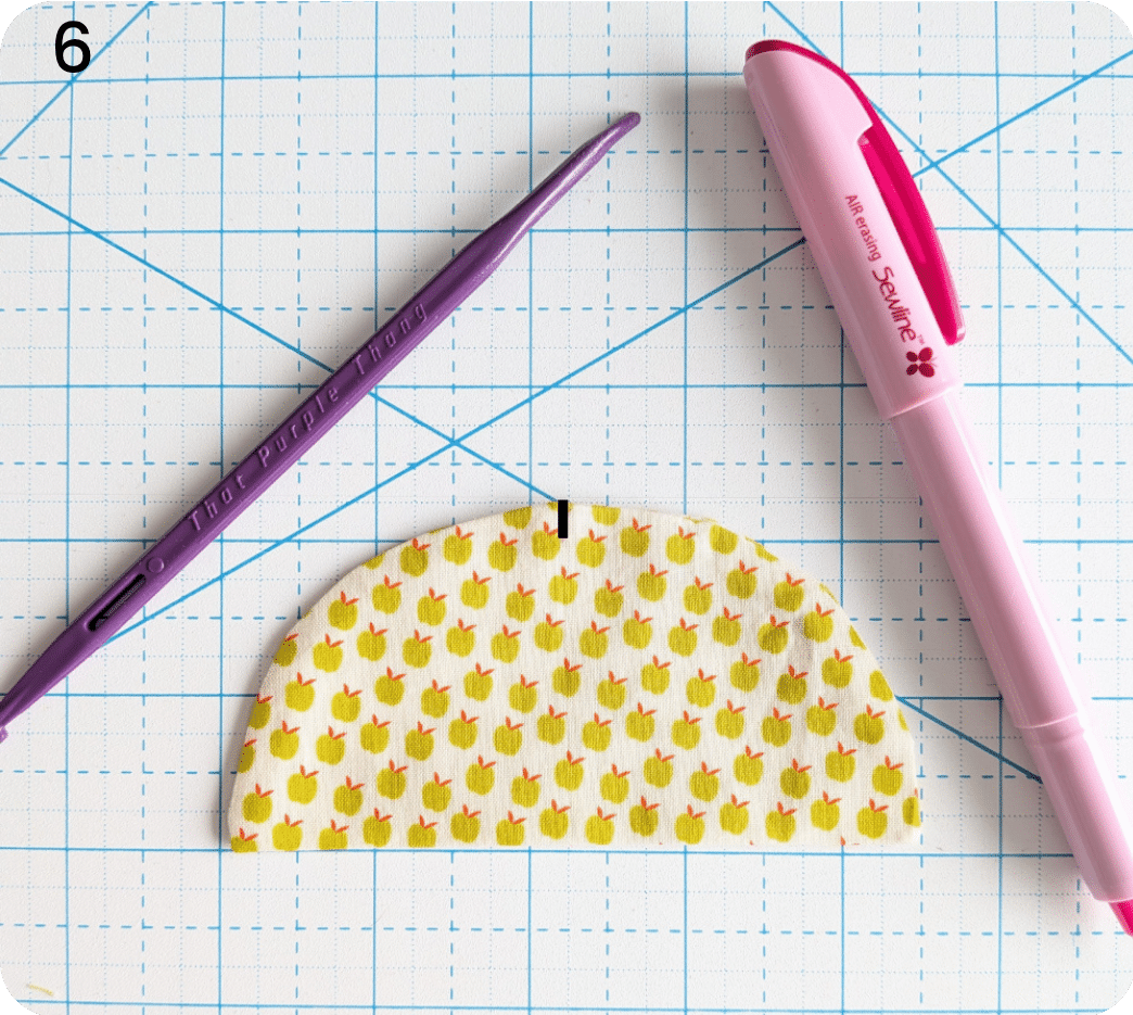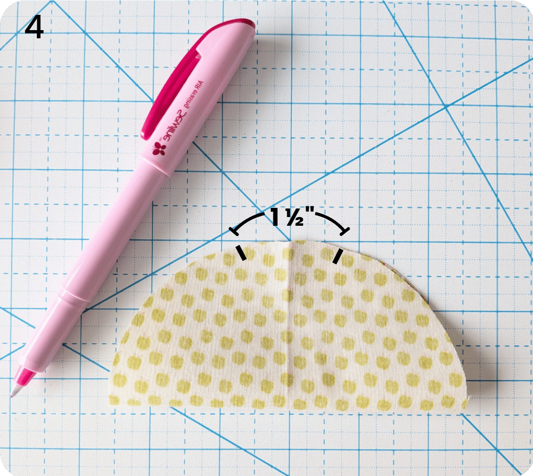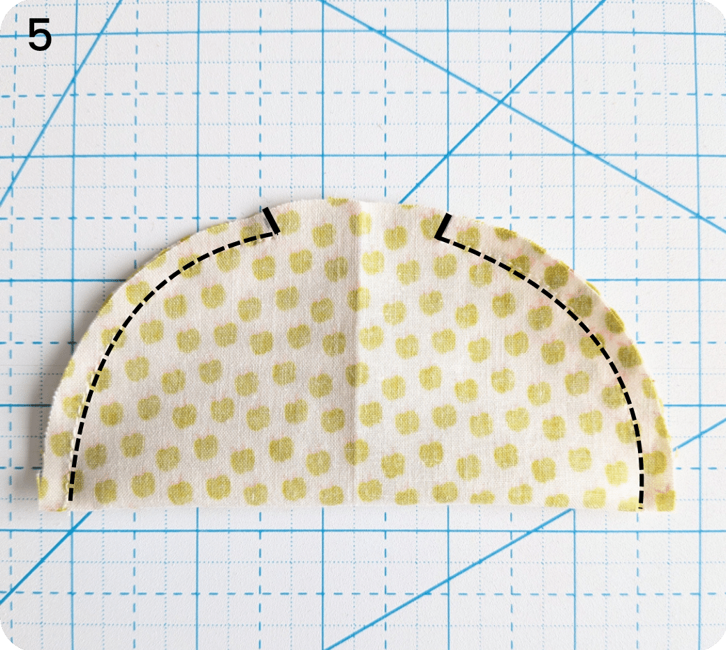 Sew ¼" away from the raw edges of the semi circle, leaving a 1 ½" gap between the marks.