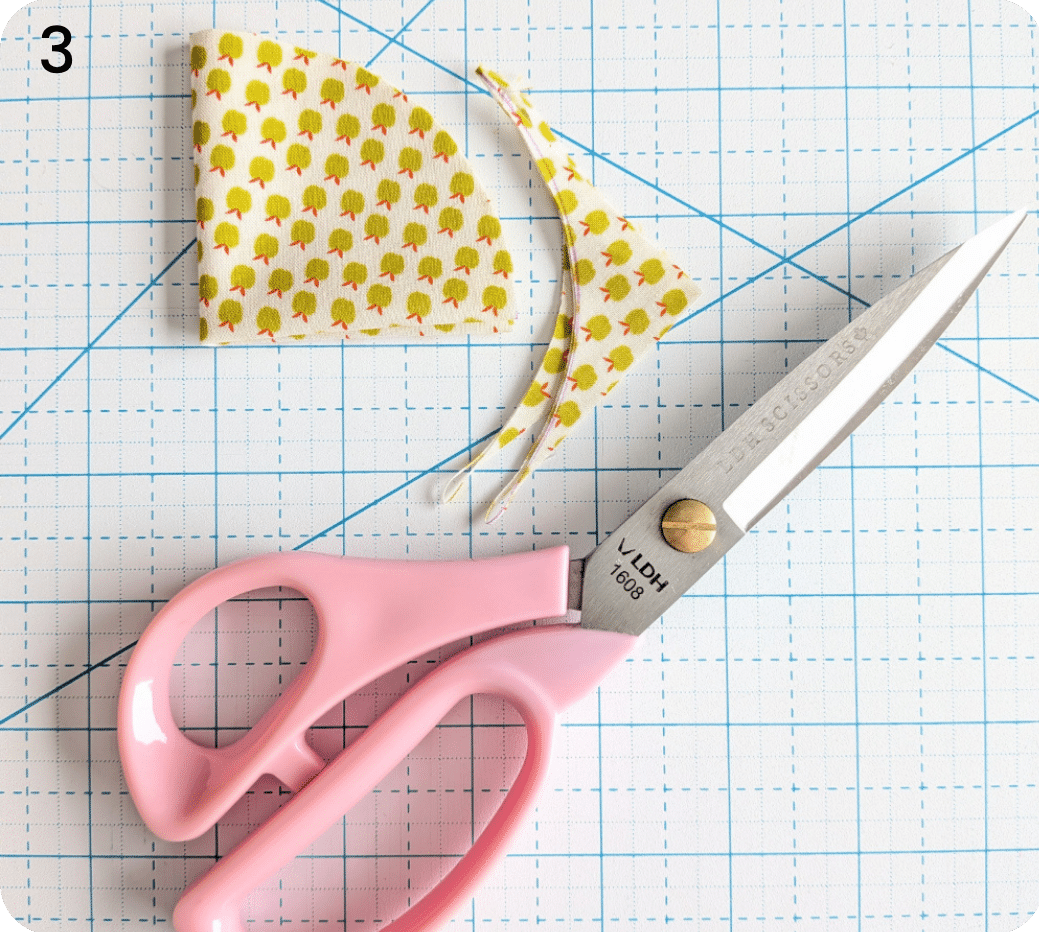 Turn the semi circle right side out, using a chopstick or other pointy object to carefully push out the corners.