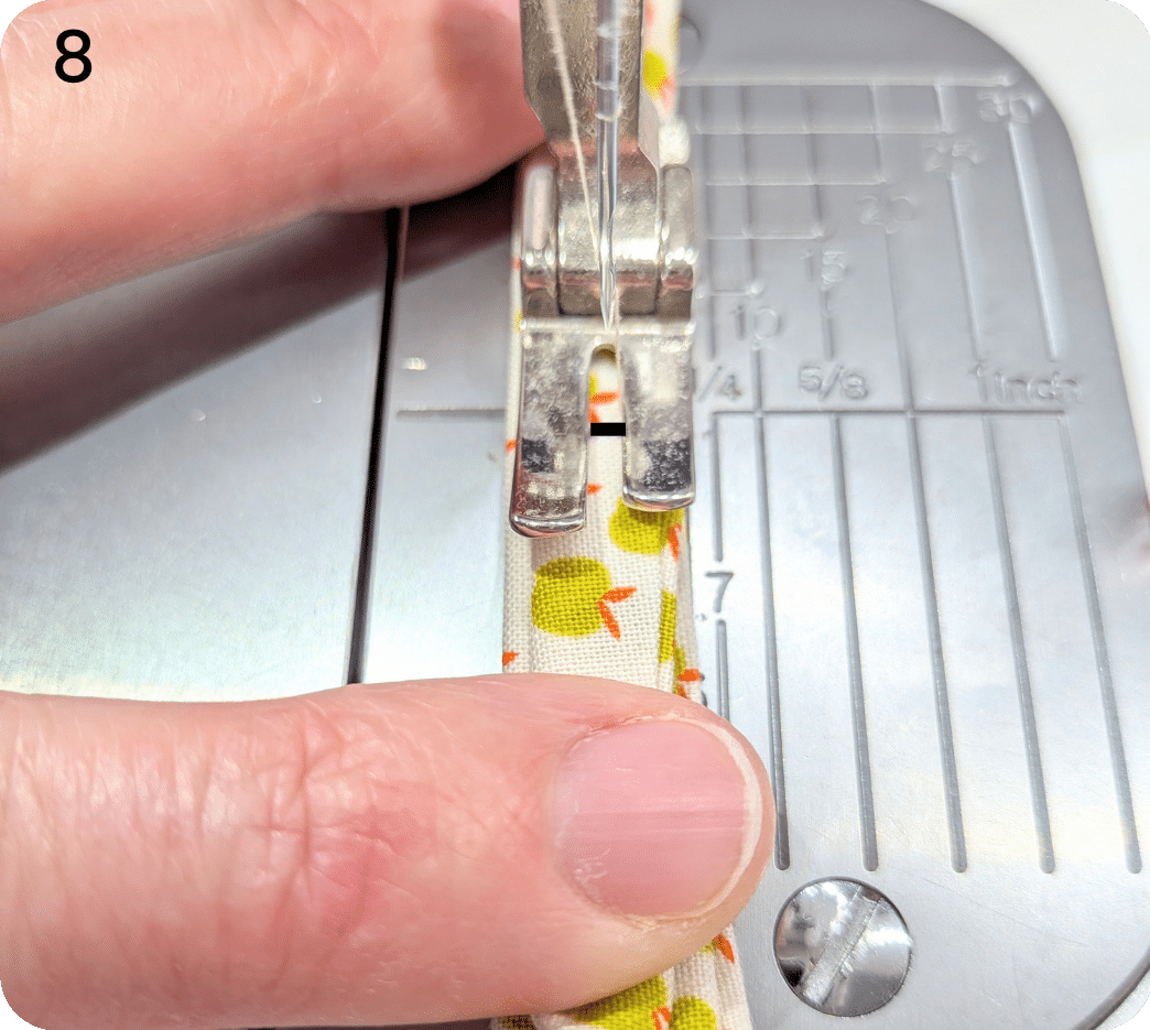 Use your fingers to tuck the fabric between the gap towards the inside. There is no need to stitch the gap closed. Press.